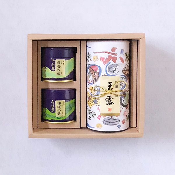 玉露(200g缶入)・ 抹茶神護の昔(30g缶入)・ 抹茶寿香の白(30g缶入) 「A-119」