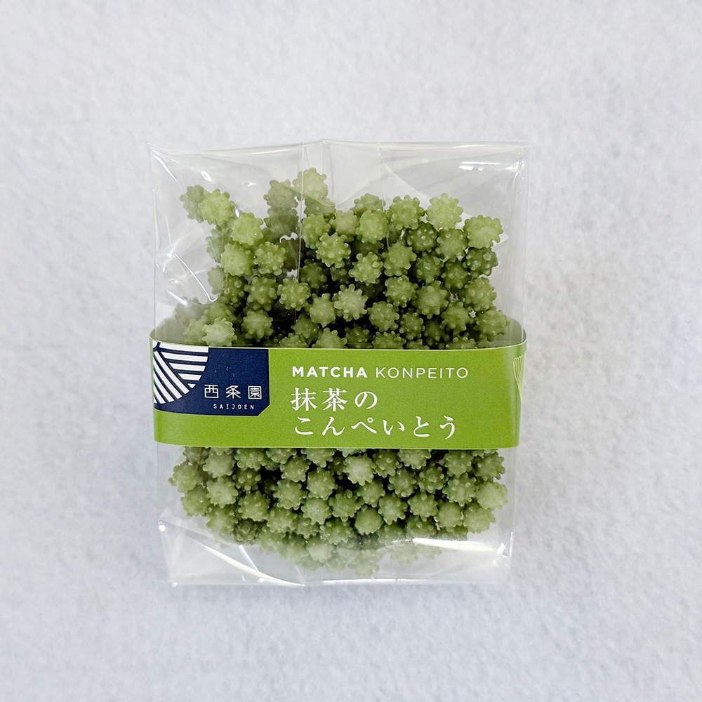 緑の可愛い彩りの金平糖です。コロコロとした舌触りで、風味豊かでほろ苦い抹茶と優しい砂糖の甘みが口中に広がるのを楽しんでいただけます。