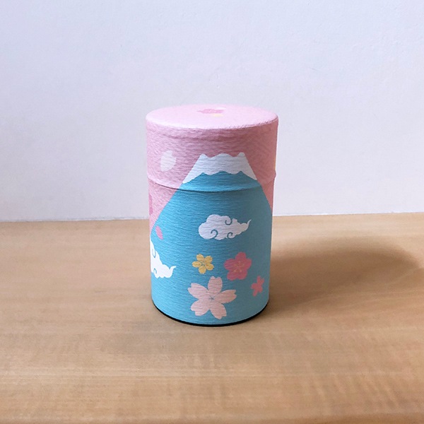 富士山の季節を目で楽しめる和紙貼りしたお茶缶に、独特の甘味と風味を併せ持つ、かりがね(くき茶)を詰めました。
