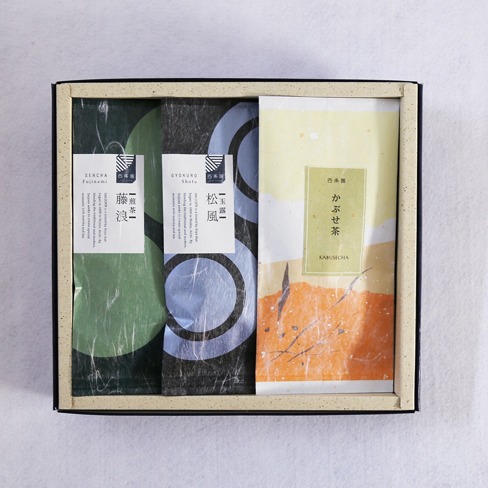 玉露松風(100g袋入)・煎茶藤浪(100g袋入)・かぶせ茶(100g袋入)
